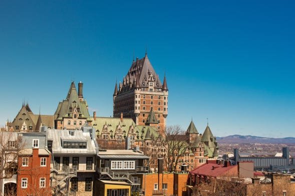 El Château Frontenac, situado en la ciudad de Quebec, Canadá, es un majestuoso hotel de estilo château que domina el skyline con su distintiva arquitectura de inspiración francesa y su impresionante torre de cobre verde. Al visitarlo, te maravillarás con su elegante fachada de ladrillos y piedra, y al entrar, serás recibido por opulentos interiores decorados con muebles antiguos, candelabros y tapices lujosos. El hotel, que ofrece vistas panorámicas del río San Lorenzo y del casco antiguo de Quebec, también es conocido por sus ricos detalles históricos y culturales, siendo un símbolo de la herencia colonial francesa en Canadá. Su ambiente sofisticado y su historia como uno de los hoteles más fotografiados del mundo lo convierten en una experiencia inolvidable.